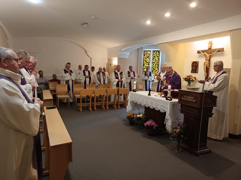 O 11:00 rozpoczęła się Msza św. w intencji zmarłych księży Polskiej Misji Katolickiej we Francji. Jak co roku ta intencja towarzyszy uczestnikom kapłańskich rekolekcji. „Żyjemy między pokusą do zniechęcenia a wezwaniem do wytrwałości – mówił w homilii bp Robert Chrząszcz. –  Ten czas rekolekcyjny jest dla nas zaproszeniem, żeby nie patrzeć na kapłaństwo w kategoriach: opłaca się, nie opłaca się”. „Naszym zadaniem jest być wiernym i wytrwałym, a reszta należy do Pana Boga” – dodał, podkreślając, że niektóre owoce kapłańskiej posługi będą widoczne być może dopiero w niebie.