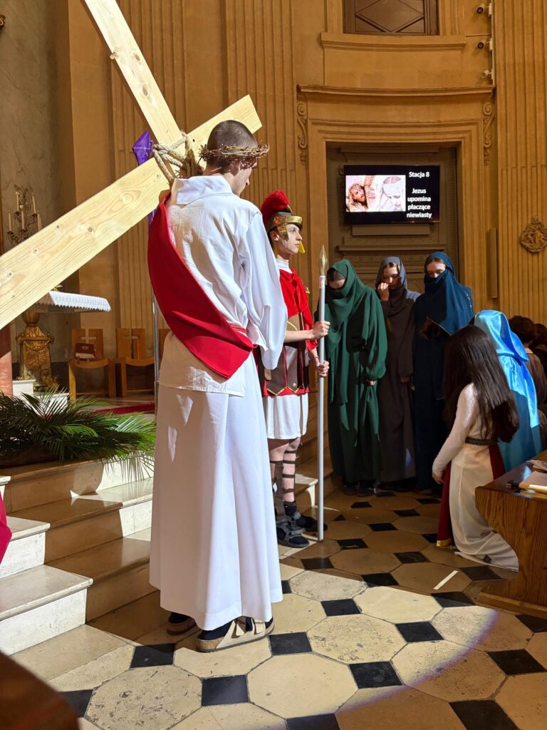 Młodzież z wielkim zaangażowaniem poprowadziła całe nabożeństwo – czytając rozważania oraz animując poszczególne stacje. Ich obecność, skupienie i autentyczność sprawiły, że uczestnicy mogli jeszcze głębiej przeżyć tajemnicę Męki Pańskiej, szczególnie w Niedzielę Palmową, kiedy w Kościele rozważana jest historia ostatnich chwil życia Jezusa.