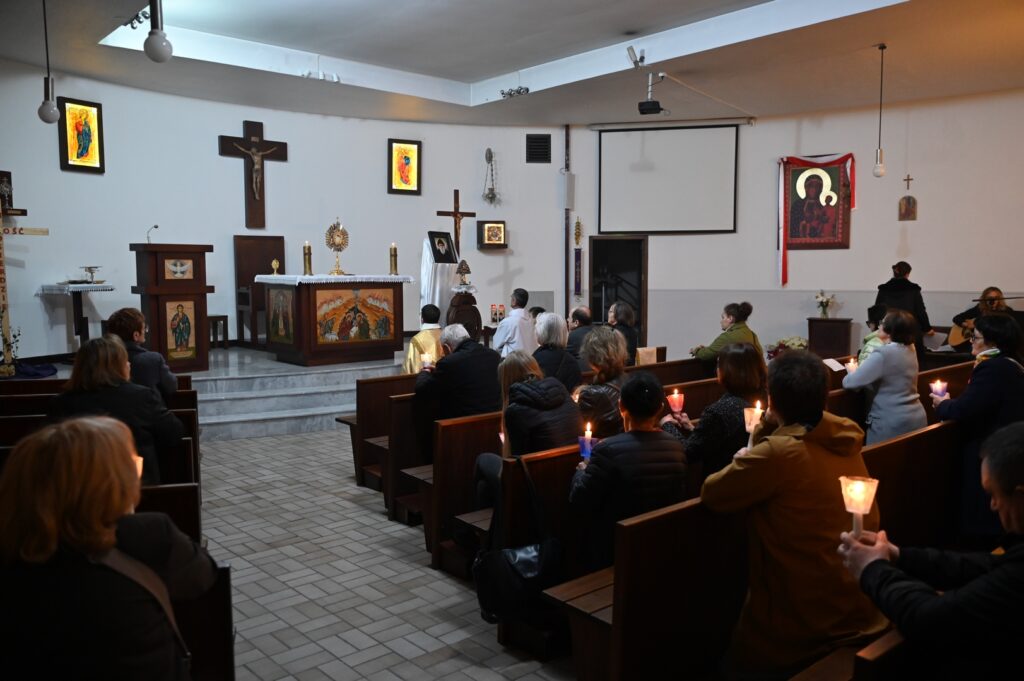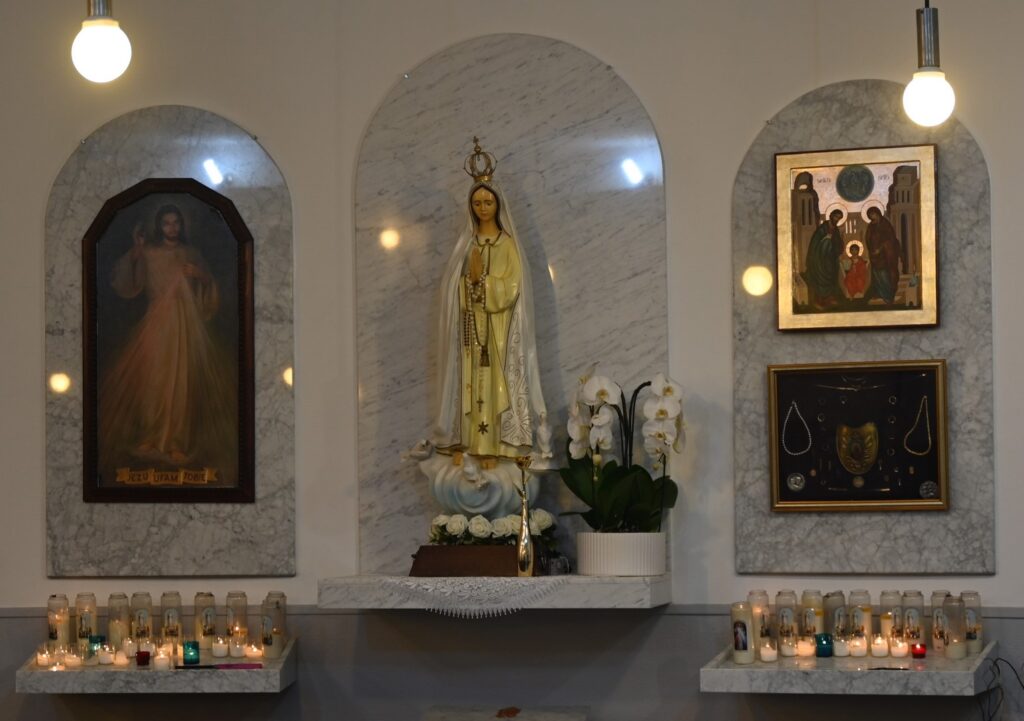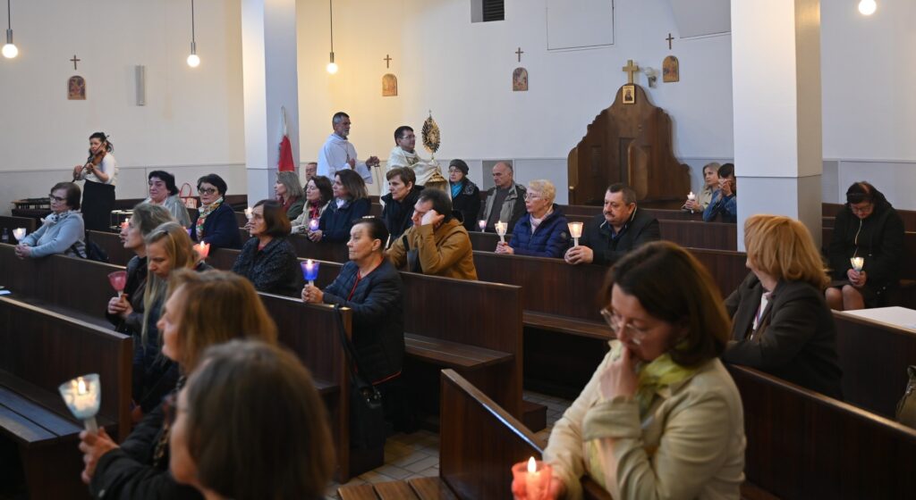 W świątyni panuje cisza, którą wypełnia modlitwa różańcowa. Wierni powierzają swoje intencje – wypowiadane szeptem lub ukryte głęboko w sercu. W tej ciszy każdy niesie swoją historię: prośby o zdrowie, siłę, pojednanie, nadzieję.
