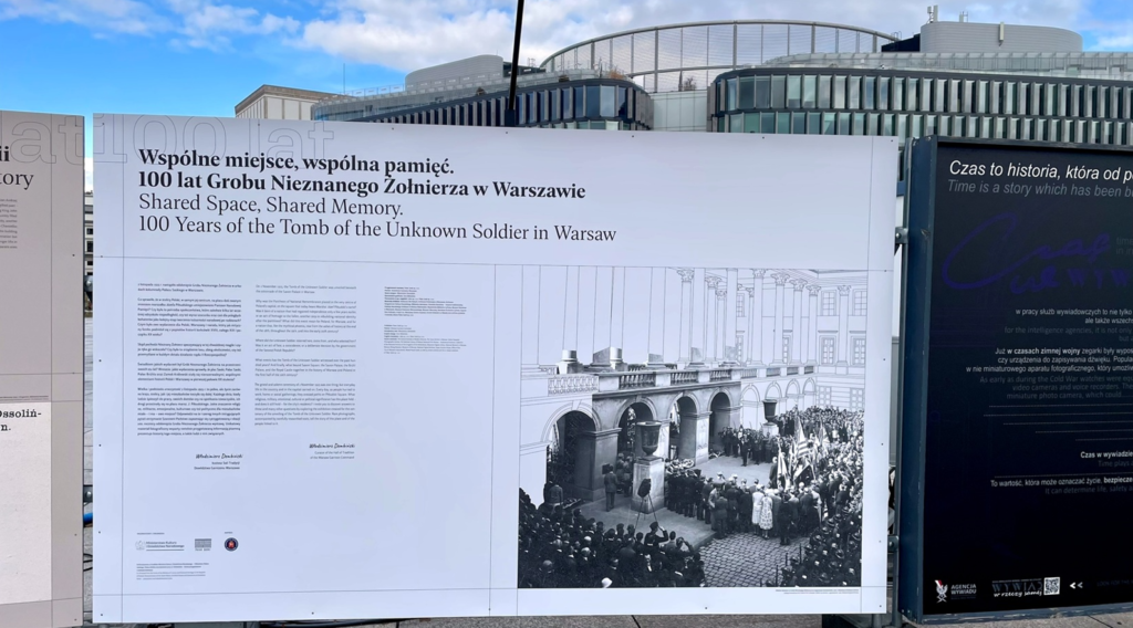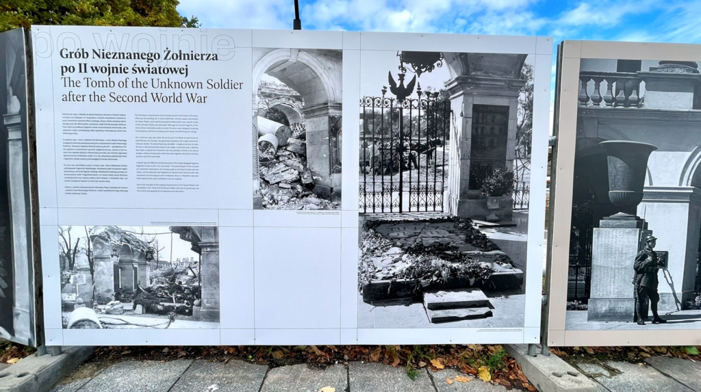 Jak to miejsce wyglądało przed wojną? Plenerowa ekspozycja „Wspólne miejsce, wspólna pamięć. 100 lat Grobu Nieznanego Żołnierza w Warszawie”, umieszczona tuż obok pomnika na placu Piłsudskiego, przypomina, jak wyglądał on przed zniszczeniem Pałacu Saskiego i jak wielkie emocje towarzyszyły jego powstaniu w 1925 roku.