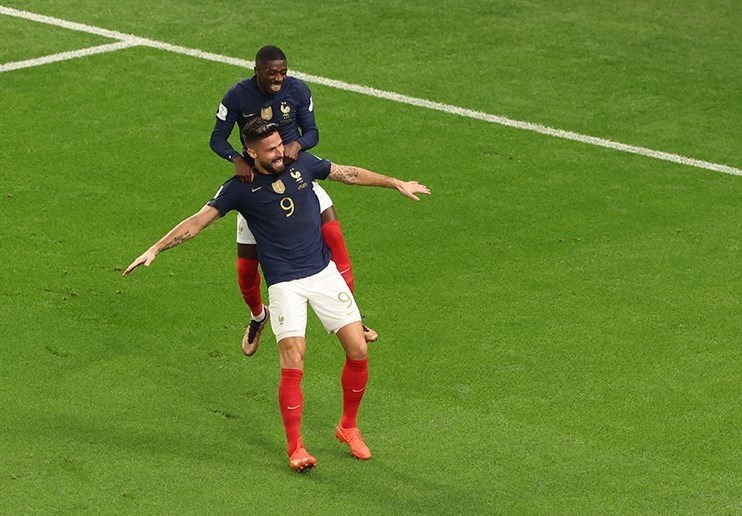 Olivier Giroud (na pierwszym planie), uczestnik mistrzostw świata w drużynie Francji, fot. Par Tasnim News Agency, CC BY 4.0, https://commons.wikimedia.org/w/index.php?curid=126422046